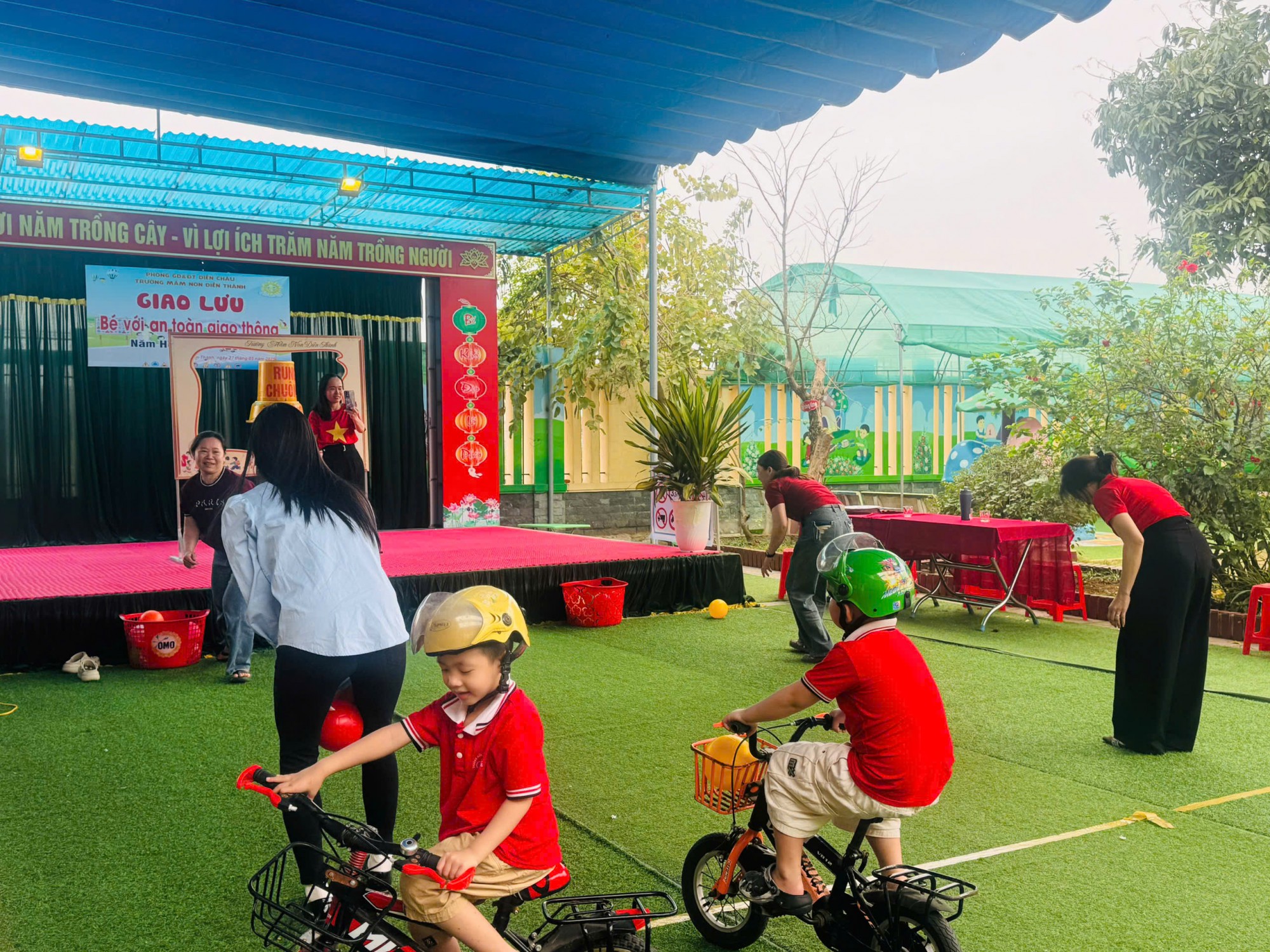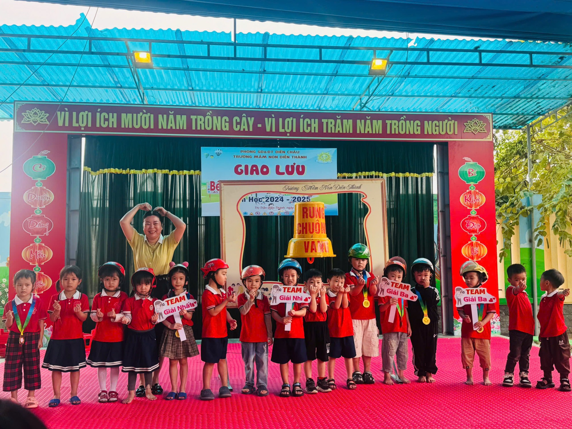 Chương trình “Tôi yêu Việt Nam” với chủ đề “ Bé với an toàn giao thông” . Nhằm nâng cao chất lượng giáo dục về quy định ATGT trong nhà trường, làm chuyển biến một mức quan trọng về nhận thức và ý thức tôn trọng, tự giác chấp hành các quy định giao thông trong giáo viên và học sinh, tạo ra một sân chơi vui và bổ ích giúp HS hình thành được những kỹ năng cơ bản về ATGT, cung cấp kiến thức ATGT và phát huy được tính tích cực chủ động trong học tập tìm hiểu các quy định ATGT.Trường mầm non Diễn Thành tổ chức giao lưu chương trình “ Bé với an toàn giao thông” năm học 2024-2025”. Cảm ơn sự quan tâm, chỉ đạo của BGH nhà trường, sự nhiệt tình, linh hoạt của các cô và đặc biệt là công tác phối hợp tuyệt vời của phụ huynh đã góp phần lớn tạo nên thành công của chương trình. " NỤ CƯỜI CỦA CÁC BẬC PH LÀ NIỀM VUI,HẠNH PHÚC CỦA NHÀ TRƯỜNG"
